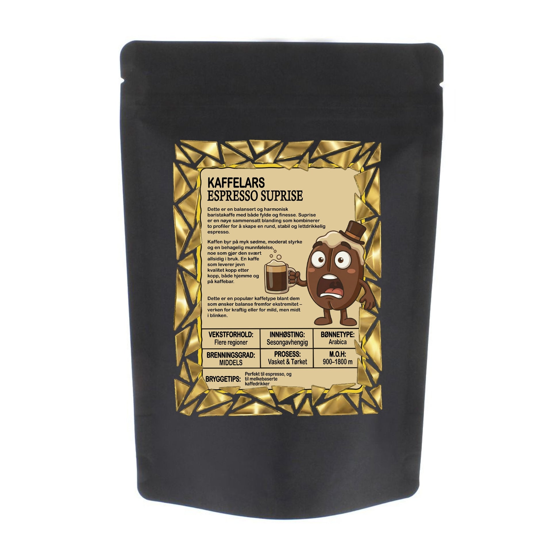 Dette er en balansert og harmonisk baristakaffe med både fylde og finesse. Suprise er en nøye sammensatt blanding som kombinerer to profiler for å skape en rund, stabil og lettdrikkelig espresso. Kaffen byr på myk sødme, moderat styrke og en behagelig munnfølelse, noe som gjør den svært allsidig i bruk. En kaffe som leverer jevn kvalitet kopp etter kopp, både hjemme og på kaffebar. Dette er en populær kaffetype blant dem som ønsker balanse fremfor ekstremitet – verken for kraftig eller for mild, men midt i blinken.